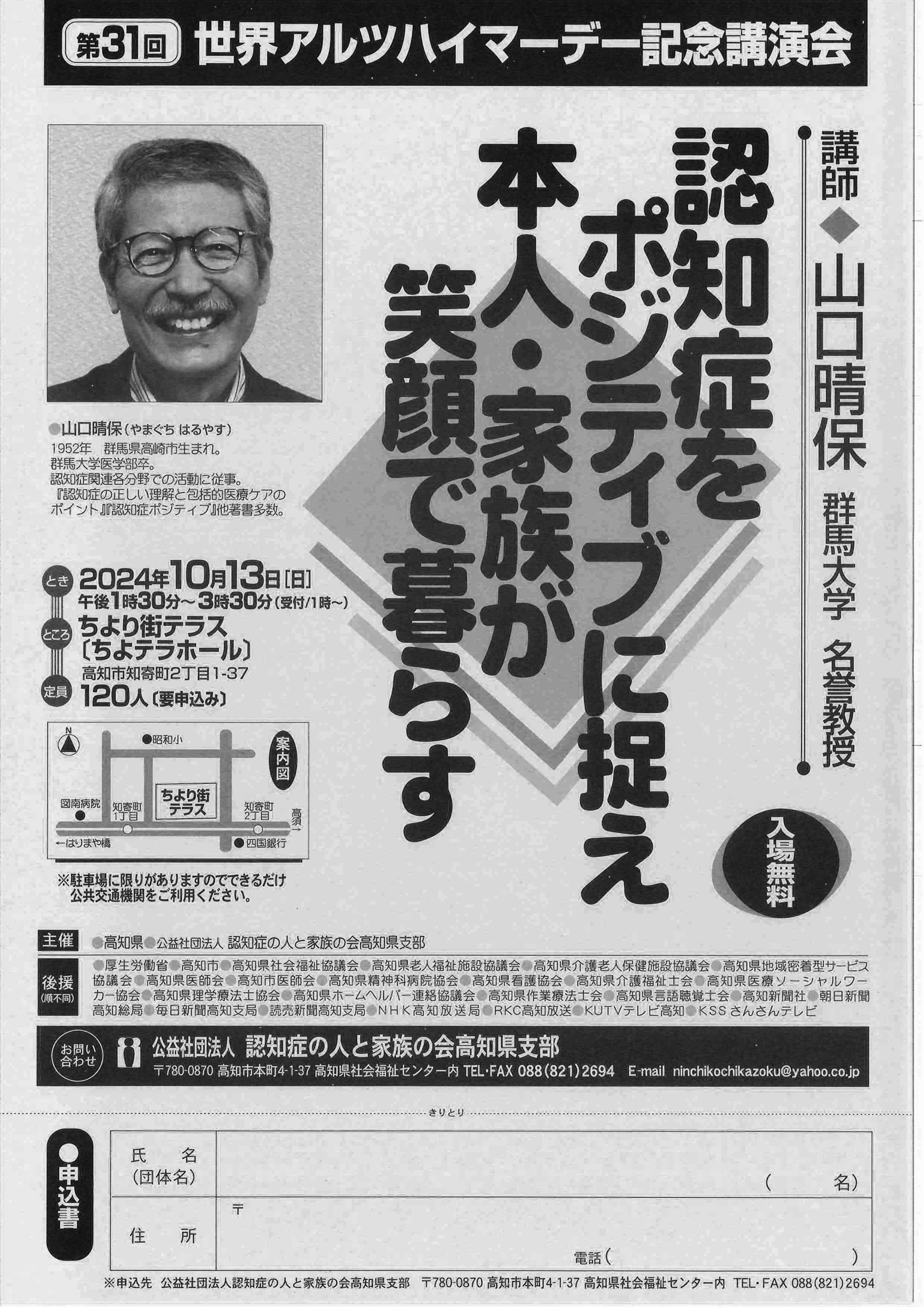第31回世界アルツハイマーデー記念講演会を開催します。